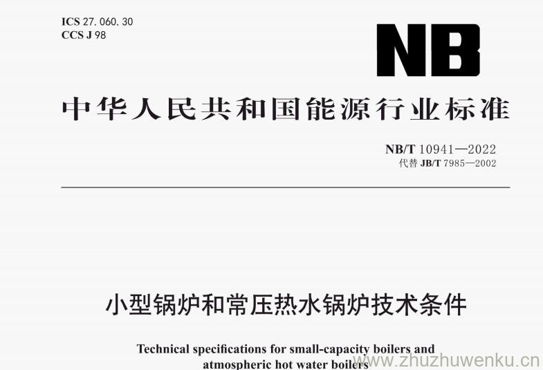 NB/T 10941-2022 pdf下载 小型锅炉和常压热水锅炉技术条件。