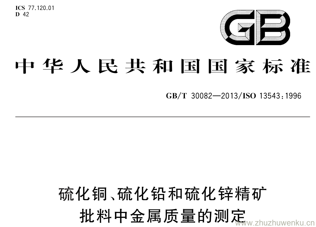 GB/T 30082-2013 pdf下载 硫化铜、硫化铅和硫化锌精矿批料中金属质量的测定