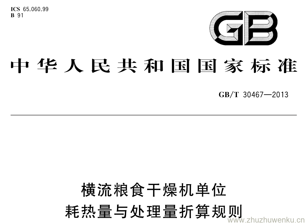 GB/T 30467-2013 pdf下载 横流粮食干燥机单位耗热量与处理量折算规则