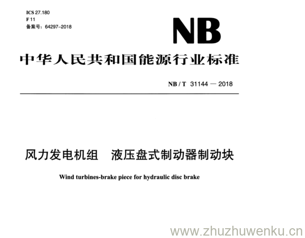 NB/T 31144-2018 pdf下载 风力发电机组 液压盘式制动器制动块。Windturbinesbrakepieceforhydraulicdiscbrake.