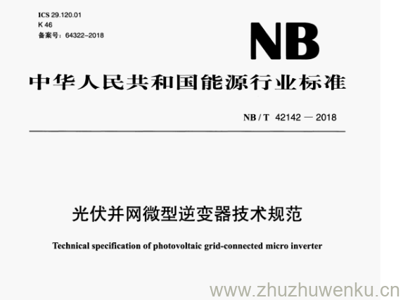 NB/T 42142-2018 pdf下载 光伏并网微型逆变器技术规范。Technical specification of photovoltaic grid-connected micro inverter.