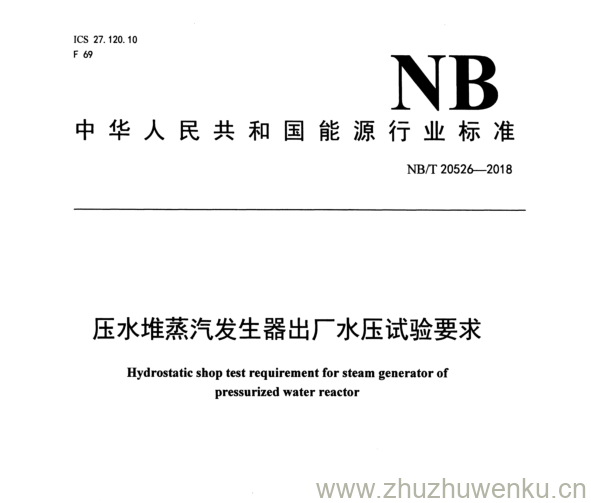 NB/T 20526-2018 pdf下载 压水堆蒸汽发生器出厂水压试验要求。Hydrostatic shop test requirement for steam generator of pressurized water reactor.