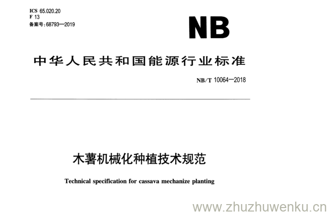 NB/T 10064-2018 pdf下载 木薯机械化种植技术规范。Technical specification for cassava mechanize planting.