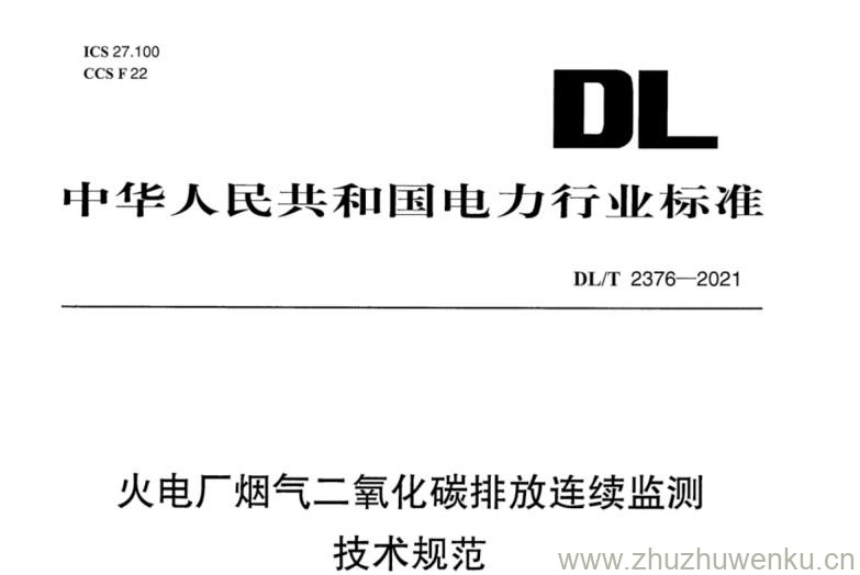 DL/T 2376-2021 pdf下载 火电厂烟气二氧化碳排放连续监测技术规范。Specification for continuous emissions monitoring of COz in the flue gas emitted from thermal power plants.