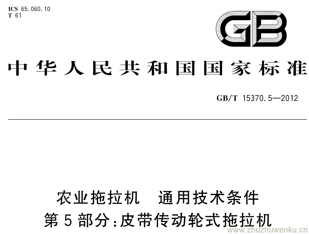 GB/T 15370.5-2012 pdf下载 农业拖拉机 通用技术条件 第 5 部分: 皮带传动轮式拖拉机
