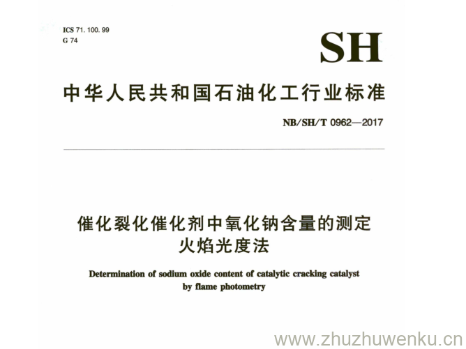 NB/SH/T 0962-2017 pdf下载 催化裂化催化剂中氧化钠含量的测定 火焰光度法。Determination of sodium oxide content of catalytic cracking catalyst by flame photometry.