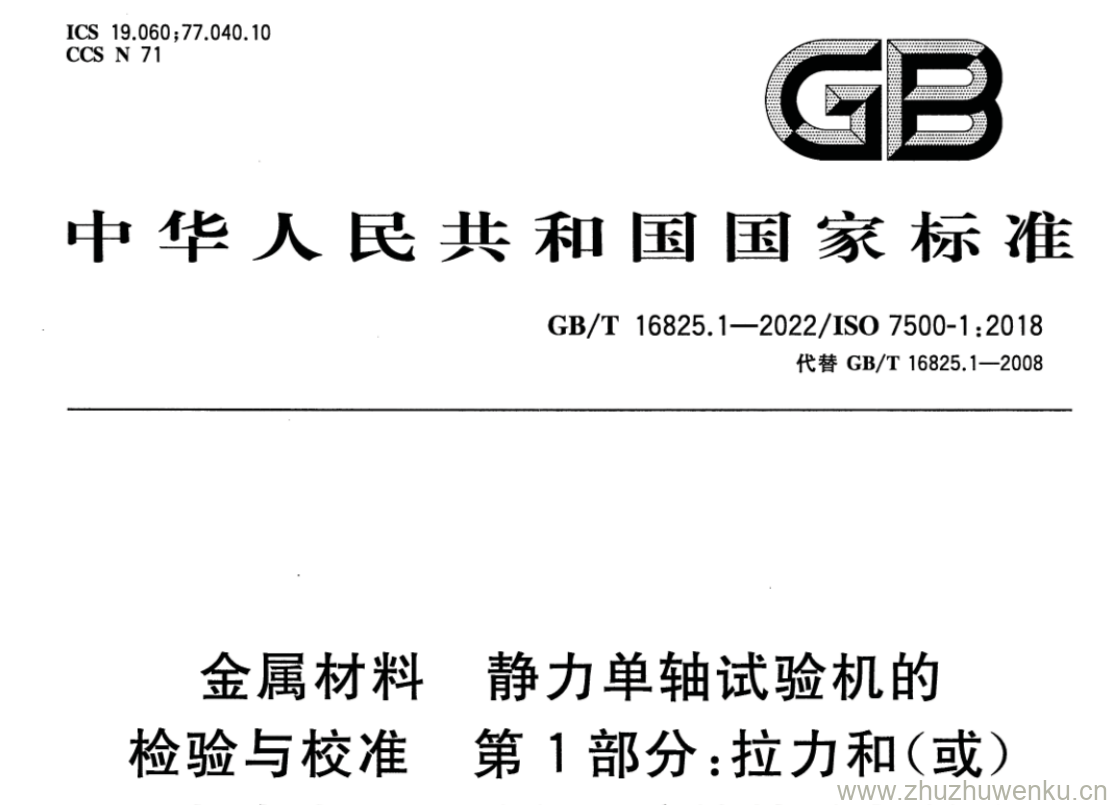 GB/T 16825.1-2022 pdf 下载金属材料 静力单轴试验机的 检验与校准 第1部分:拉力和(或) 压力试验机 测力系统的检验与校准