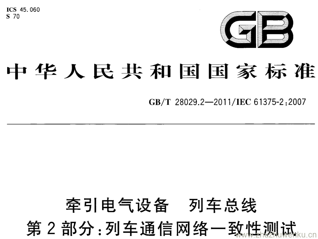 GB/T 28029.2-2011 pdf下载 牵引电气设备 列车总线 第2部分:列车通信网络一致 性测试