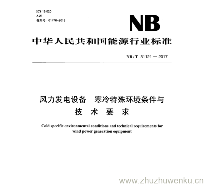 NB/T 31121-2017 pdf下载 风力 发电设备寒冷特殊环境条件与 技 术 要 求。Cold specific environmental conditions and technical requirements for wind power generation equipment.