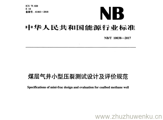 NB/T 10038-2017 pdf下载 煤层气井小型压裂测试设计及评价规范。Specifications of mini-frac design and evaluation for coalbed methane well.