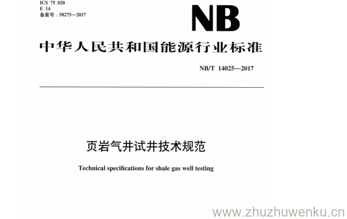 NB/T 14025-2017 pdf下载 页岩气井试井技术规范