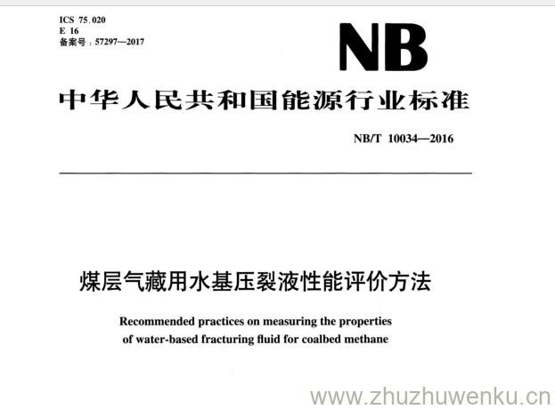 NB/T 10034-2016 pdf下载 煤层气藏用水基压裂液性能评价方法。Recommended practices on measuring the properties of water-based fracturing fluid for coalbed methane.