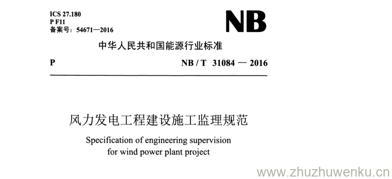 NB/T 31084-2016 pdf下载风力发电工程建设施工监理规范。Specification of engineering supervision for wind power plant project.