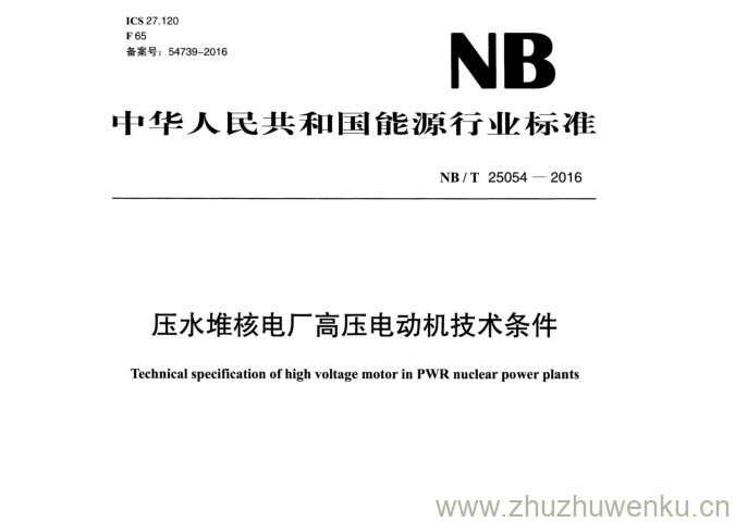 NB/T 25054-2016 pdf下载 压水堆核电厂高压电动机技术条件。Technical specification of high voltage motor in PWR nuclear power plants.