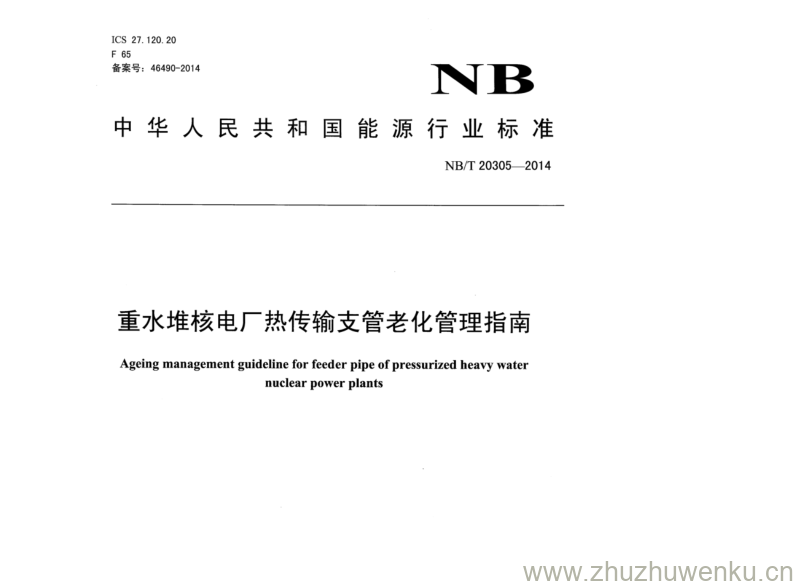 NB/T 20305-2014 pdf下载 重水堆核电厂热传输支管老化管理指南。Ageing management guideline for feeder pipe of pressurized heavy water nuclear power plants.