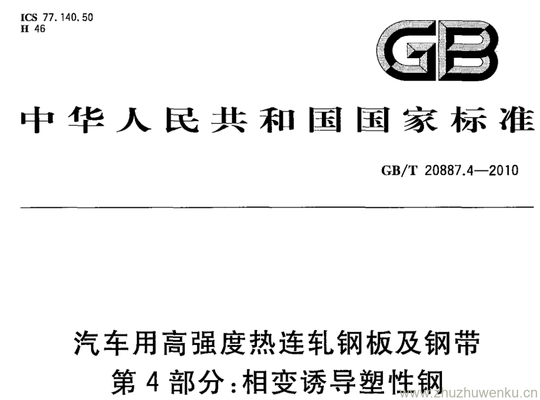 GB/T 20887.4-2010 pdf下载 汽车用高强度热连轧钢板及钢带 第4部分:相变诱导塑性钢