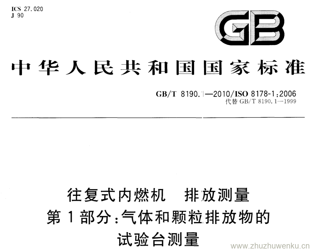 GB/T 8190.1-2010 pdf下载 往复式内燃机 排放测量 第1部分:气体和颗粒排放物的试验台测量