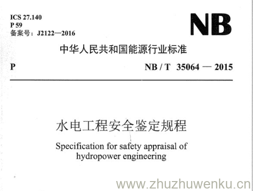 NB/T 35064-2015 pdf下载 水电工程安全鉴定规程。Specification for safety appraisal of hydropower engineering.