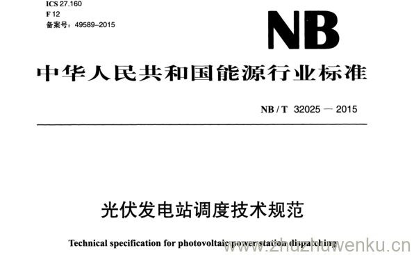 NB/T 32025-2015 pdf下载 光伏发电站调度技术规范。Technical specification for photovoltaic power station dispatching.