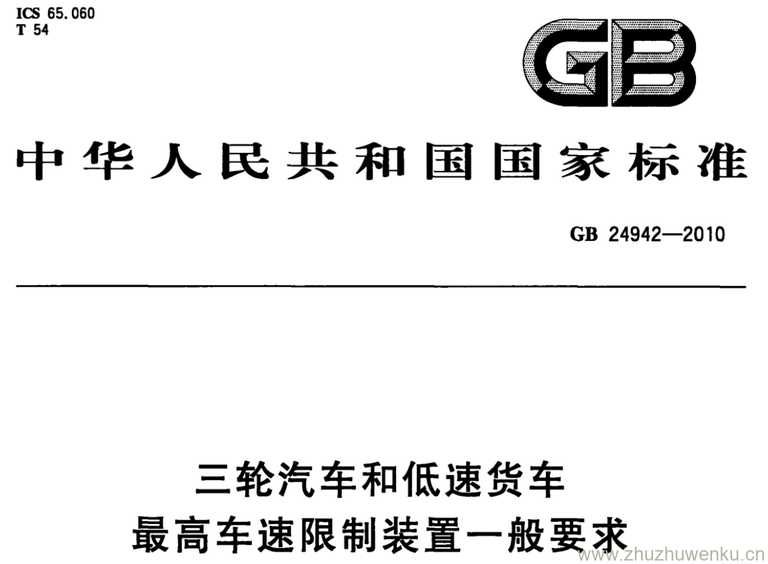 GB/T 24942-2010 pdf下载 三轮汽车和低速货车 最高车速限制装置一般要求