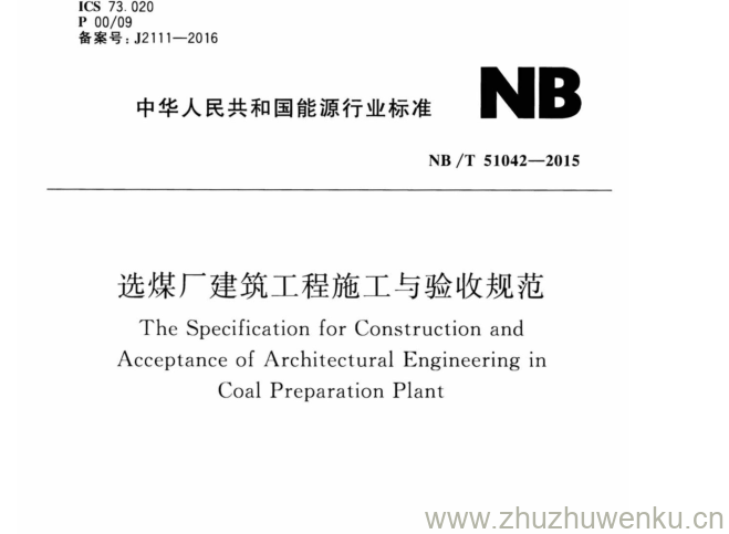 NB/T 51042-2015 pdf下载 选煤厂建筑工程施工与验收规范。The Specification for Construction and Acceptance of Architectural Engineering in Coal Preparation Plant.