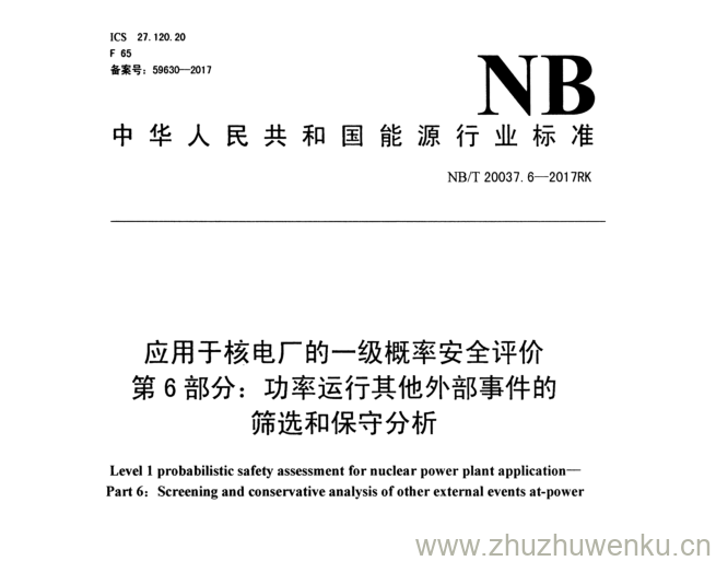 NB/T 20037.6-2017 pdf下载 应用于核电厂的一级概率安全评价 第 6 部分: 功率运行其他外部事件的 筛选和保守分析