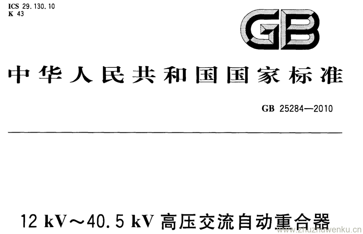 GB/T 25284-2010 pdf下载 12 kV~40.5 kV高压交流自动重合器