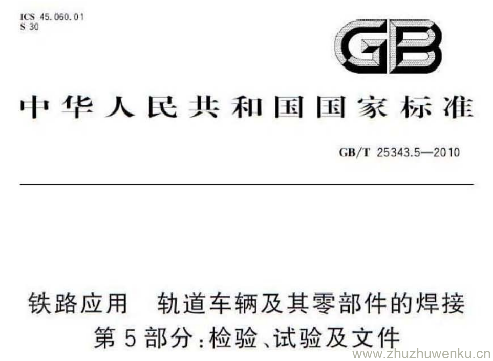 GB/T 25343.5-2010 pdf下载 铁路应用 轨道车辆及其零部件的焊接 第5部分:检验、试验及文件