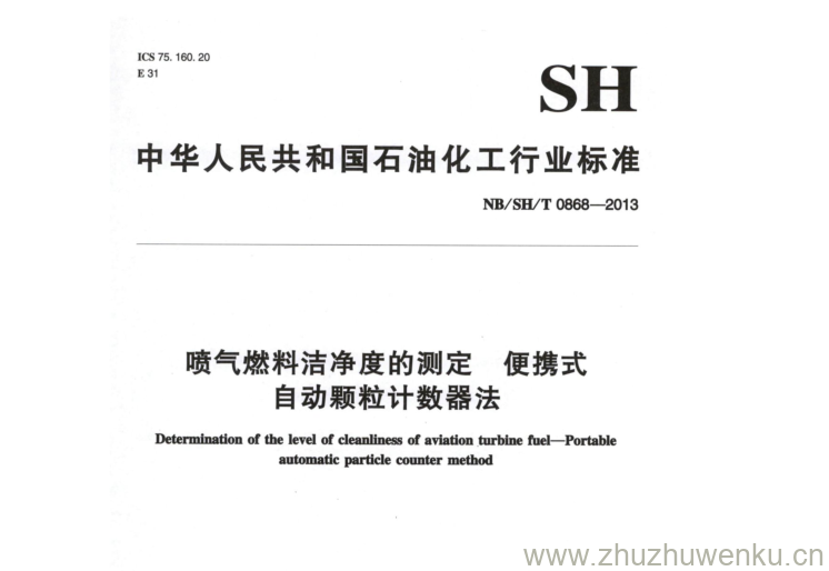 NB/SH/T 0868-2013 pdf下载 喷气燃料洁净度的测定便携式 自动颗粒计数器法。Determination of the level of cleanliness of aviation turbine fuel- Portable automatic particle counter method.