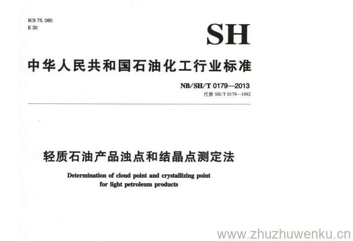 NB/SH/T 0179-2013 pdf下载 轻质石油产品浊点和结晶点测定法。Determination of cloud point and erystallizing point for light petroleum products.