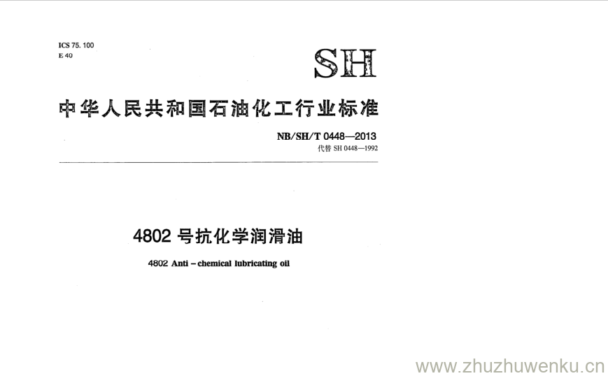 NB/SH/T 0448-2013 pdf下载 4802号抗化学润滑油。4802 Anti – chemical lubricating oll.