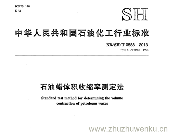 NB/SH/T 0588-2013 pdf下载 石油蜡体积收缩率测定法。Standard test method for determining the volume contraction of petroleum waxes.