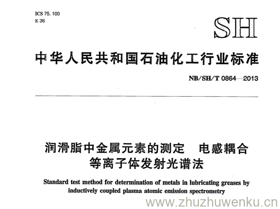 NB/SH/T 0864-2013 pdf下载 润滑脂中金属元素的测定 电感耦合 等离子体发射光谱法。Standard test method for determination of metals in lubricating greases by inductively coupled plasma atomic emision spectrometry.