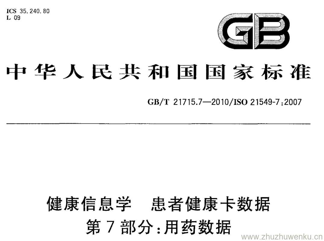 GB/T 21715.7-2010 pdf下载 健康信息学 患者健康卡数据 第7部分:用药数据