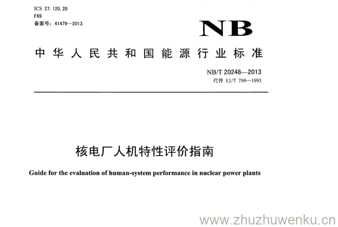 NB/T 20248-2013 pdf下载 核电厂人机特性评价指南。Guide for the evaluation of human-system performance in nuclear power plants.