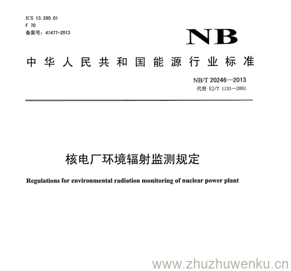 NB/T 20246-2013 pdf下载 核电厂环境辐射监测规定。Regulations for environmental radiation monitoring of nuclear power plant.