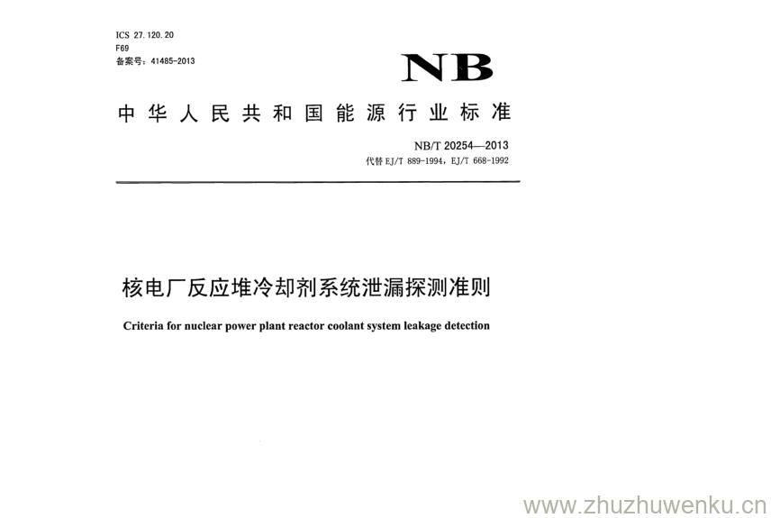 NB/T 20254-2013 pdf下载 核电厂反应堆冷却剂系统泄漏探测准则。Criteria for nuclear power plant reactor coolant system leakage detection.