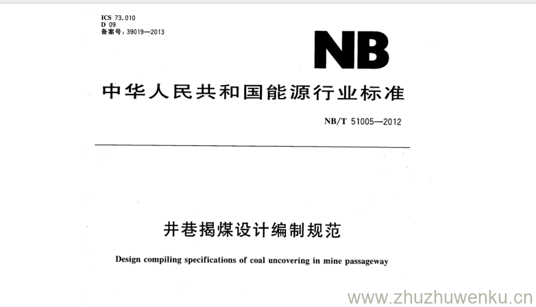 NB/T 51005-2012 pdf下载 井巷揭煤设计编制规范。Design compiling secificatins of coal uncovering in mine passageway.