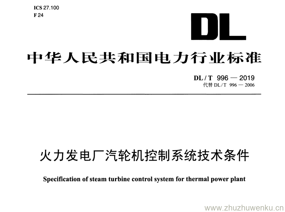 DL/T 996-2019 pdf下载 火力发电厂汽轮机控制系统技术条件。Specification of steam turbine control system for thermal power plant.