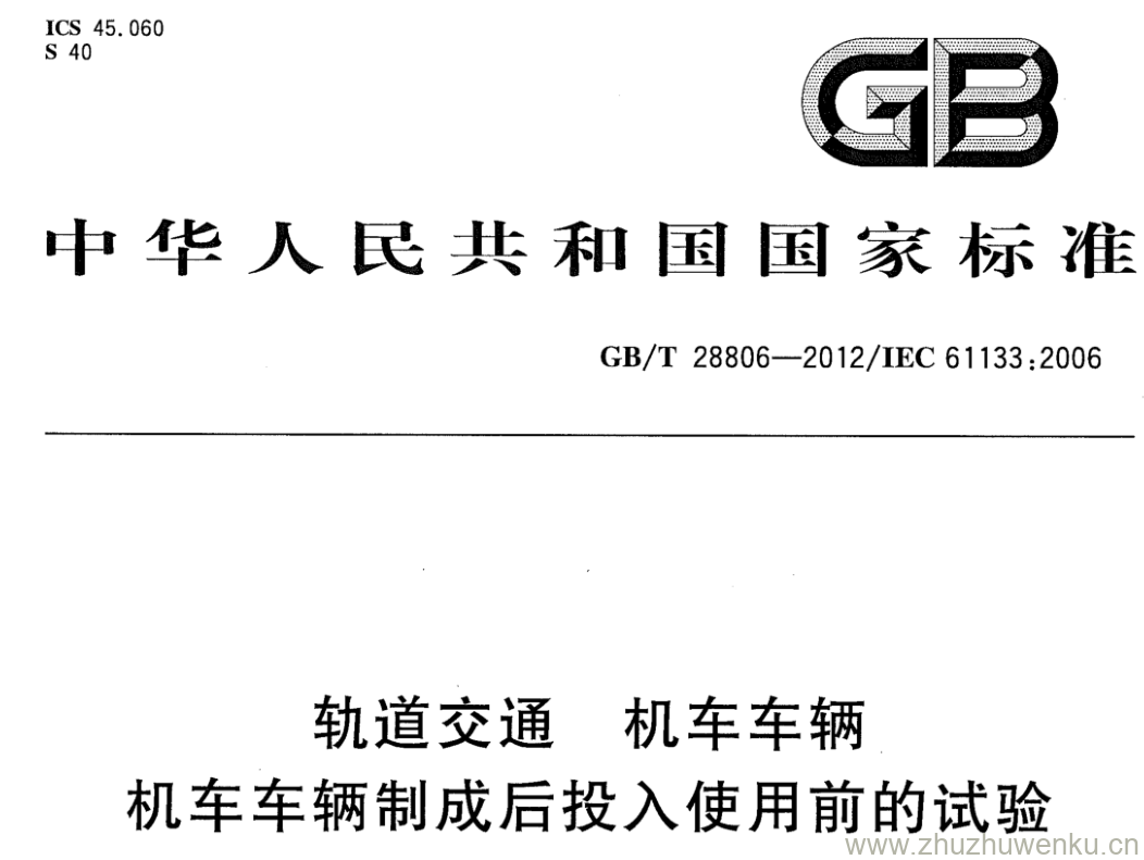GB/T 28806-2012 pdf下载 轨道交通 机车车辆 机车车辆制成后投入使用前的试验