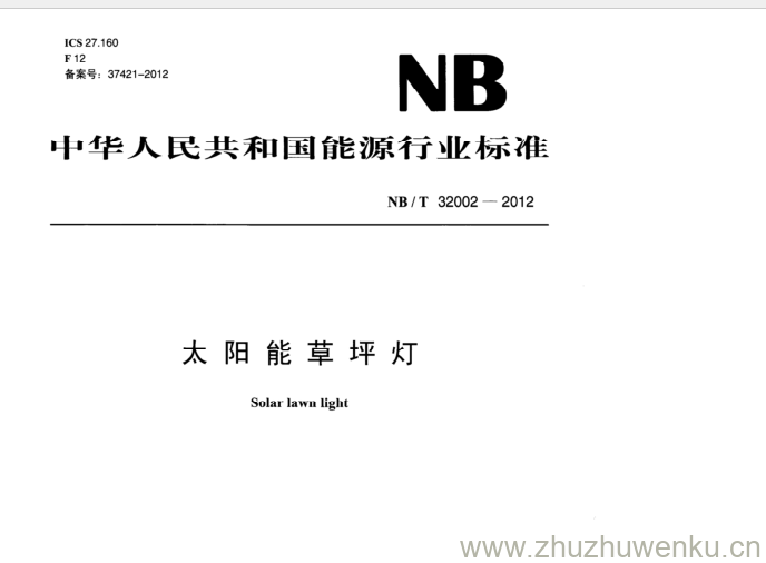 NB/T 32002-2012 pdf下载 太阳能草坪灯。Solar lawn ligh.