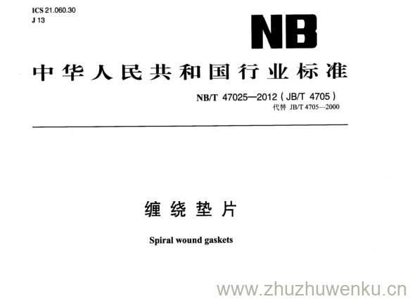 NB/T 47025-2012 pdf下载 缠绕垫片。Spiral wound gaskets.