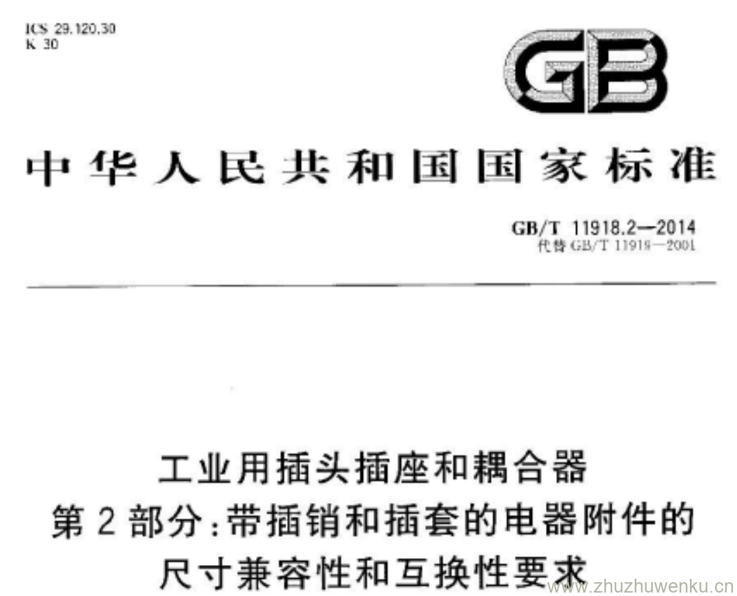 GB/T 11918的本部分规定了带插销和插套的工业用插头插座和耦合器的尺寸互换性要求等技术要求。