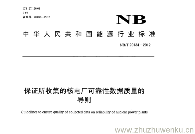 NB/T 20134-2012 pdf下载 保证所收集的核电厂可靠性数据质量的 导则。Guidelines to ensure quality of collected data on reliability of nuclear power plants.