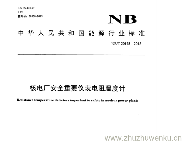 NB/T 20148-2012 pdf下载 核电厂安全重要仪表电阻温度计。Resistance temperature detectors important to safety in nuclear power plants.