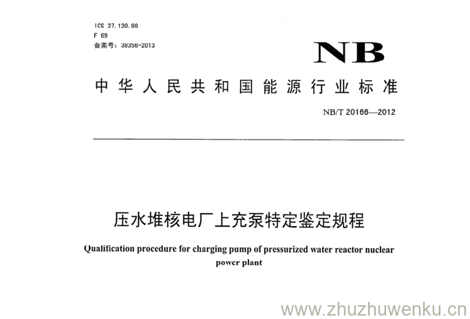 NB/T 20166-2012 pdf下载 压水堆核电厂上充泵特定鉴定规程。Qulification procedure for charging pump of pressurized water reactor nuclear power plant.