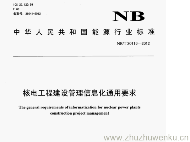 NB/T 20116-2012 pdf下载 核电工程建设管理信息化通用要求。The general requirements of informatization for nuclear power plants construction projeet management.