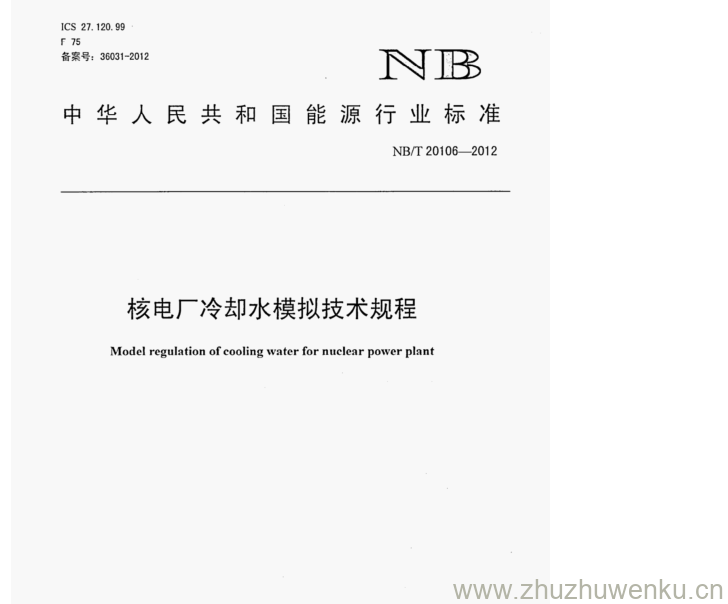 NB/T 20106-2012 pdf下载 核电厂冷却水模拟技术规程。Model regulation of cooling water for nuclear power plant.