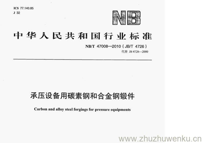 NB/T 47008-2010 pdf下载 承压设备用碳素钢和合金钢锻件。Carbon and alloy steel forgings for pressure equipments.