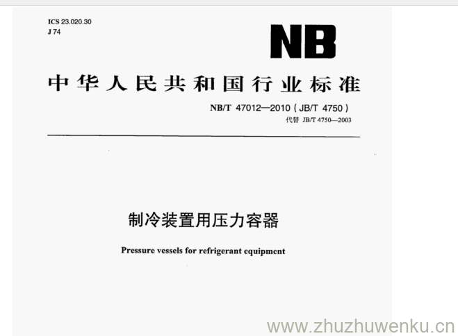NB/T 47012-2010 pdf下载 制冷装置用压力容器